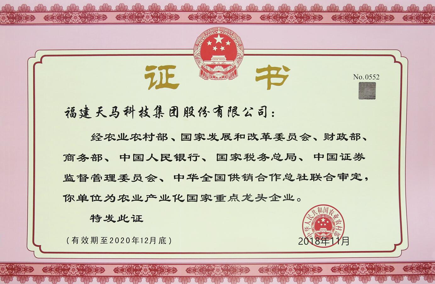 農(nóng)業(yè)產(chǎn)業(yè)化國(guó)家重點(diǎn)龍頭企業(yè)